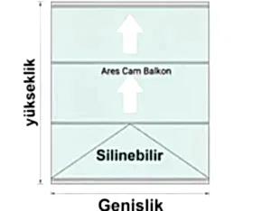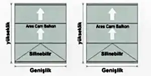 Silinebilir giyotin cam balkon hesaplaması yapılırken yukarıda düz giyotin cam balkon hesaplaması yaparken kullandığımız yöntemler tamamen aynıdır.